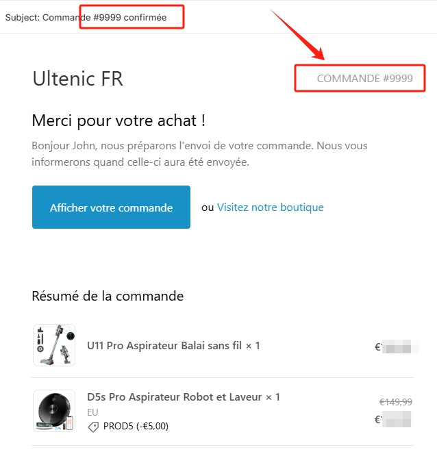 Option 2: Après avoir passé une commande avec succès, nous vous enverrons un e-mail de confirmation à votre boîte de réception, où vous pourrez trouver votre numéro de commande.