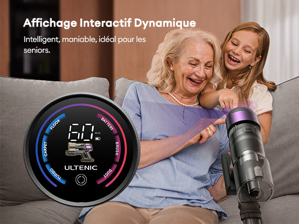 Intelligent, maniable, idéal pour les seniors.Notre écran amélioré intègre les commandes de l’appareil, les modes de puissance, l’état de la batterie et les alertes d’erreur dans une interface intuitive - idéal pour les seniors et tout le monde.